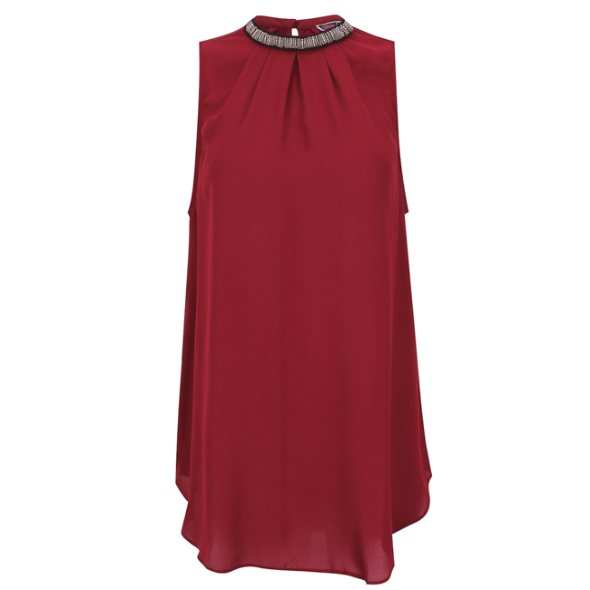 Áo kiểu không tay cổ đính cườm màu đỏ #62 - 15-0253