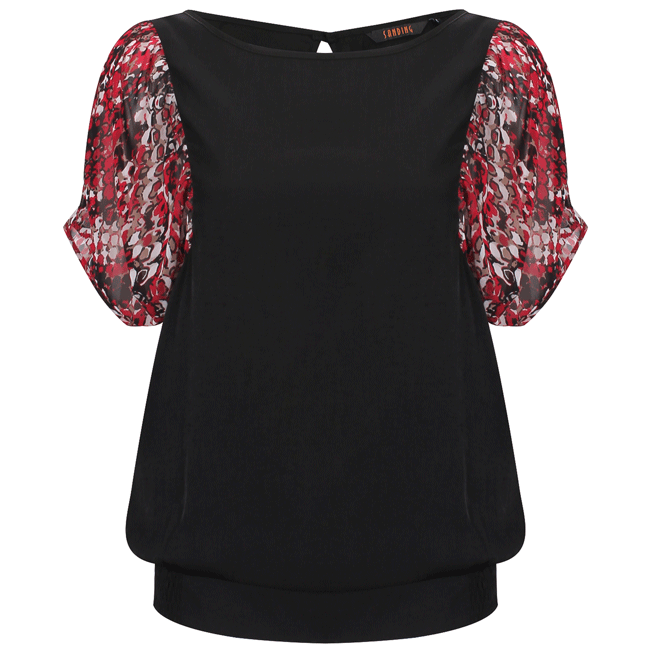 Áo kiểu phối tay liền màu đen #60 - 15-0273