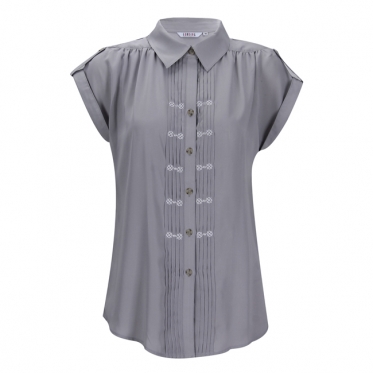 2698 2017-11-20 11:26:22 Áo sơmi nữ màu xám xếp ply thêu