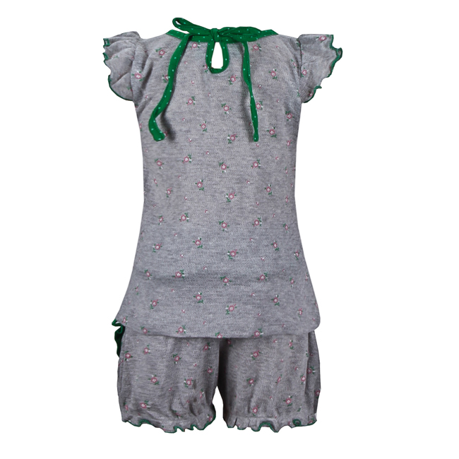 Đồ bộ trẻ em màu xám viền xanh phối bèo nơ - 110228-SDK1007
