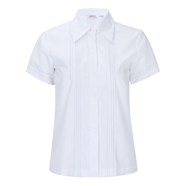 Áo sơmi học sinh nữ ren nẹp diễu chỉ màu trắng
